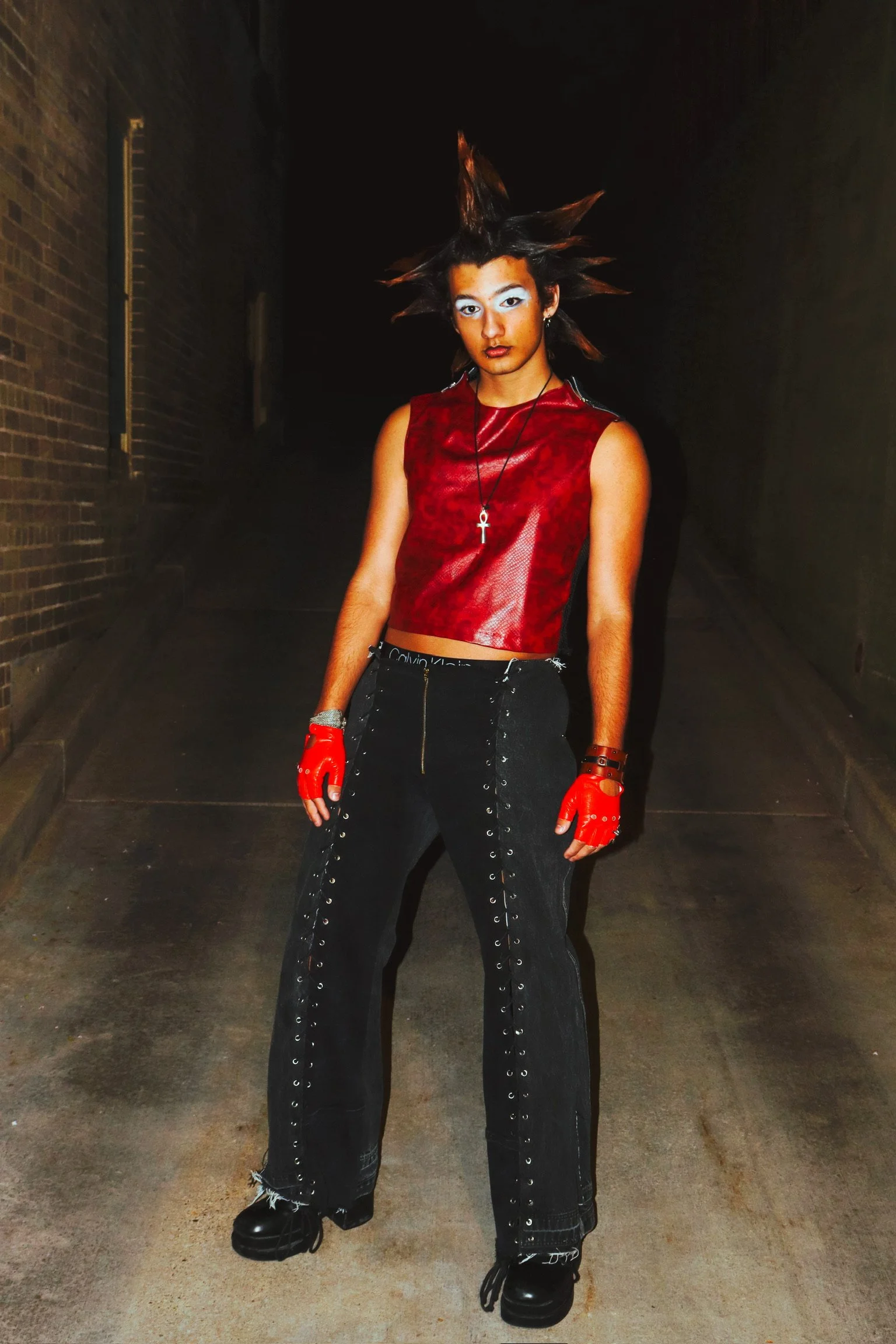 DIY inspired sleeveless top with front lace up denim, 100% upcycled materials